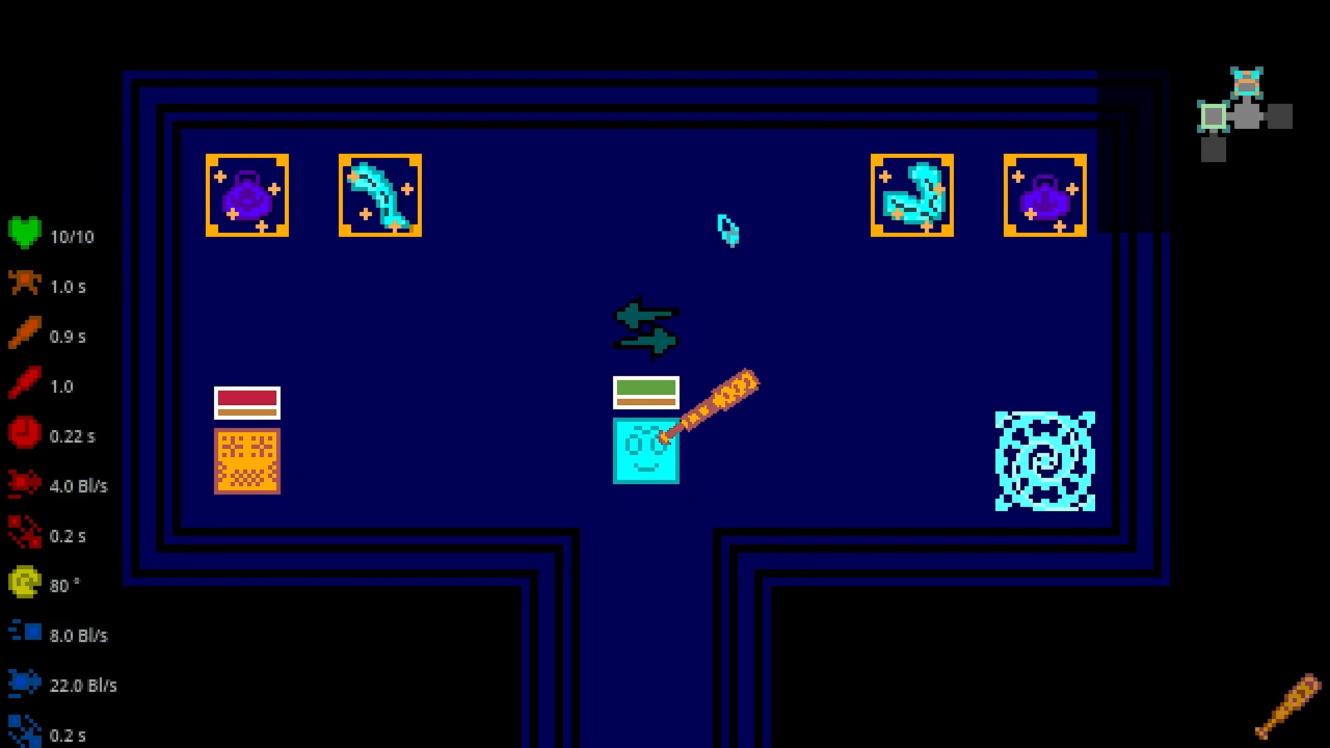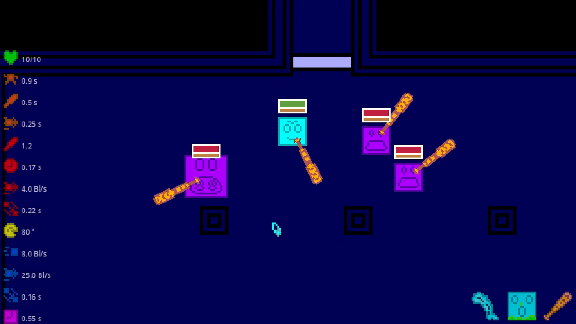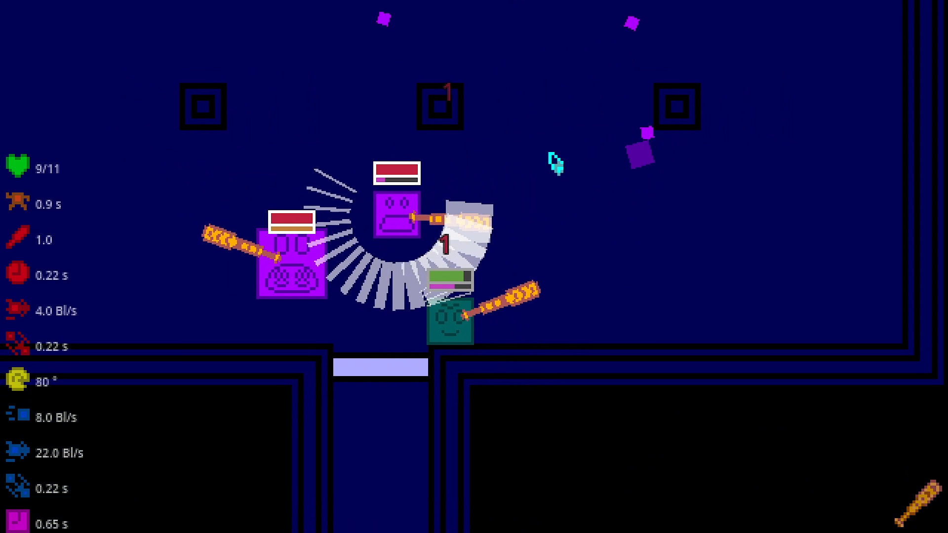 It's a top-down rogue-like, where you'll smash negative squares to pieces with baseball bat and few other things.