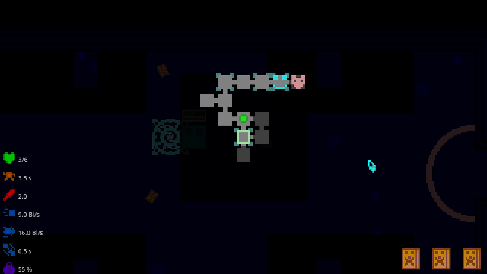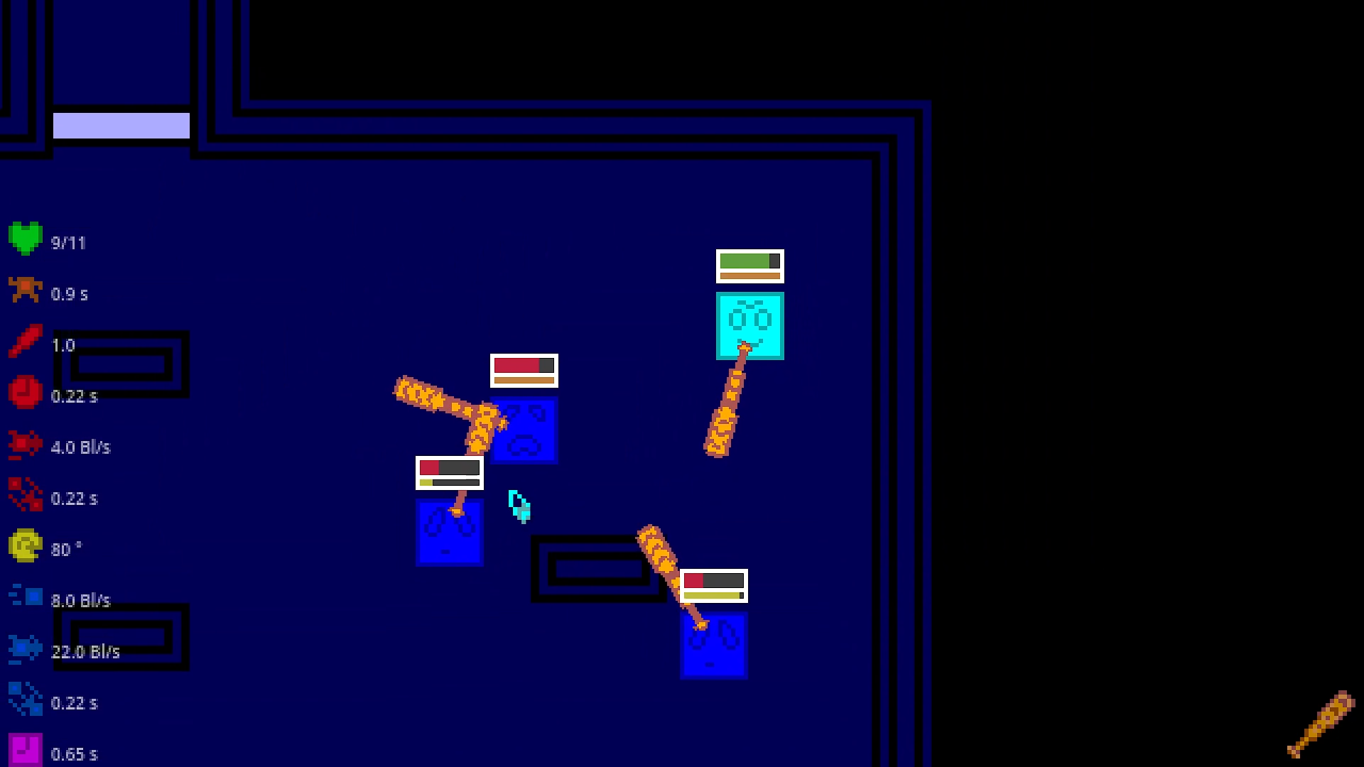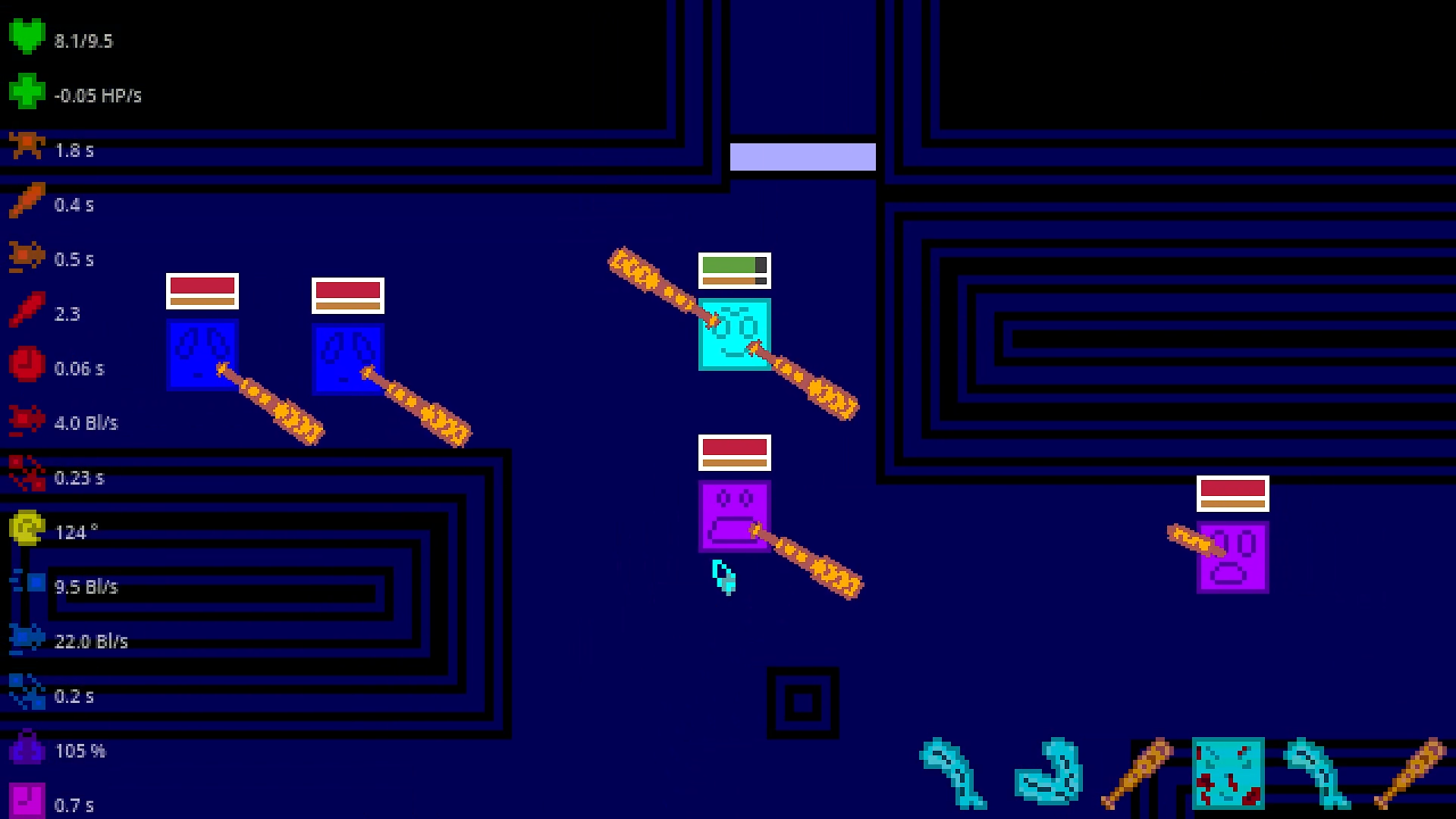 It's a top-down rogue-like, where you'll smash negative squares to pieces with baseball bat and few other things.